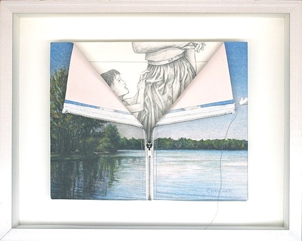 Pastel on paper with zipper;